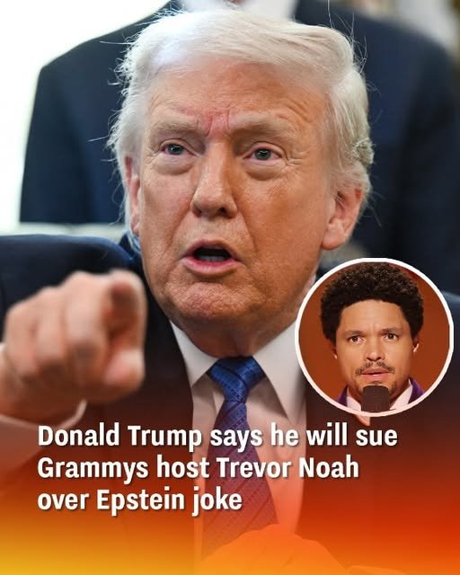 Donald Trump threatened to sue ‘total loser’ Trevor Noah after the Grammys host cracked a joke suggesting Trump and Bill Clinton spent time on Epstein’s