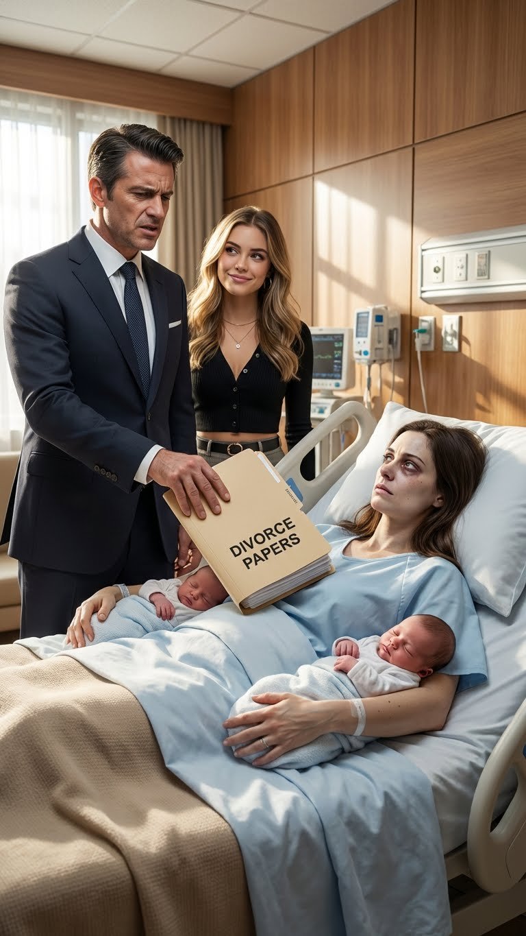 “Sign the divorce papers now,” my husband snapped, tossing documents onto my bed while I was still recovering. He showed up with his assistant to