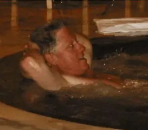 During Bill Clinton’s deposition, lawmakers reportedly asked about photographs referenced in the files. Among them were images described as showing him swimming with Ghislaine Maxwell and an unidentified woman, as well as a separate image involving a hot tub scene.