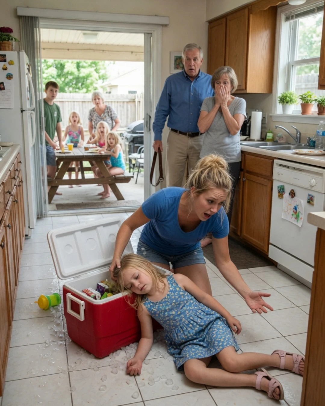 Meanwhile, three days after the party, Lily came home with a row of stitches hidden under her hair and a list of instructions taped to our refrigerator.